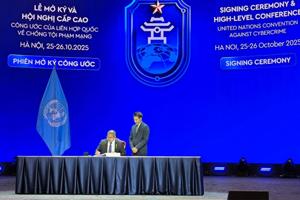 މި އެއްބަސްވުމުގައި ސޮއިކުރުމަށް ހަމަޖެހިފައިވަނީ އޮކްޓޯބަރު 25 އަދި 26 ގައި ވިއެޓްނާމްގެ ހަނޯއީގައި ބާއްވާ ރަސްމިއްޔާތެއްގަ އެވެ. އޭގެ ފަހުގައި 2026 ޑިސެންބަރު 31 ގެ ނިޔަލަށް ނިއު ޔޯކްގައި ހުންނަ އދ. މައިމަރުކަޒުގައި ވެސް ސޮއި ކުރުމުގެ ފުރުސަތު ހުޅުވާލެވިފައިވާނެ އެވެ. ސައިބަރ ސަލާމަތާއި ޒަމާނީ ޖަސްޓިސް ޤާއިމުކުރުމަށް މިފަދަ ބައިނަލްއަޤުވާމީ އެއްބަސްވުމެއް މުހިންމު ދައުރެއް އަދާކުރާކަން ފާހަގަކޮށްލެވެ އެވެ.