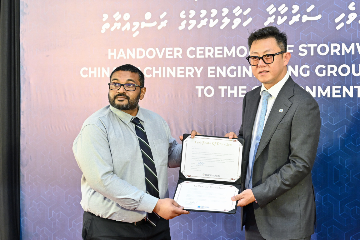 ޗައިނާ މެޝިނަރީ އިންޖިނިއަރިންގ ގްރޫޕް ކޯރޕަރޭޝަން ލިމިޓެޑް (ސީއެމްއީސީ) ގެ ފަރާތުން ދިވެހި ސަރުކާރަށް ފެން ހިންދާ ހަ ޕަމްޕް ރަސްމީކޮށް ހަދިޔާކޮށްފި އެވެ.