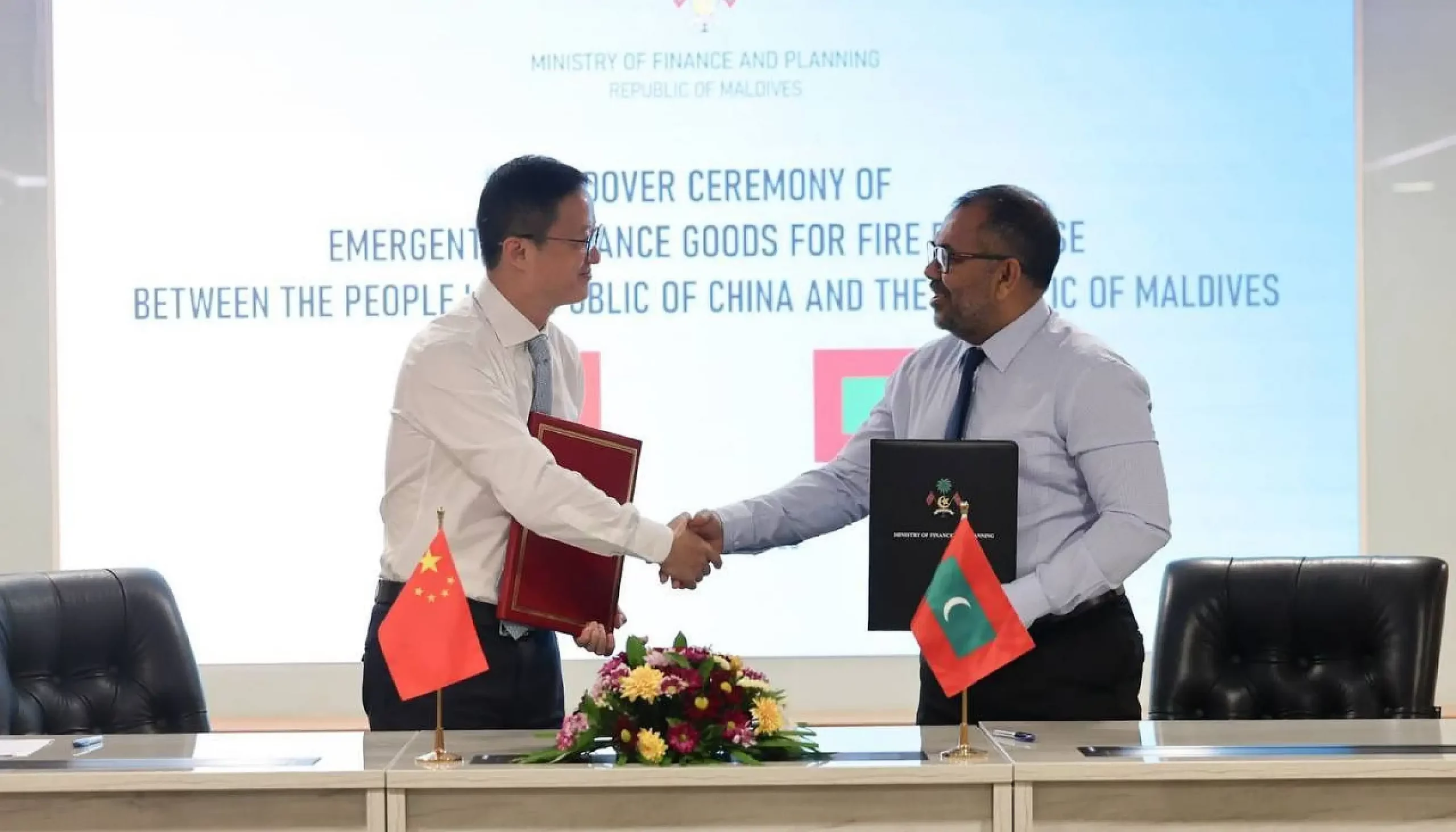 މިދިޔަ އަހަރުގެ ޑިސެންބަރު މަހު، އޭރު ތިން މިނިސްޓްރީއެއް ހިންގަމުންދިޔަ އިމާރާތްތަކުގައި ހިނގި އަލިފާނުގެ ހާދިސާގައި ލިބުނު ގެއްލުންތަކުން އަރައިގަތުމަށްޓަކައި، ޗައިނާ ސަރުކާރުން ރާއްޖެއަށް 2.8 މިލިއަން ޑޮލަރު (43 މިލިއަން ރުފިޔާ) ގެ އެހީއެއް ފޯރުކޮށްދީފި އެވެ.