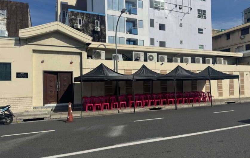 މިއަދު ކޯޓަށް ޙާޟިރުވާ ފަރާތްތަކަށް ފަސޭހަކޮށްދިނުމުގެ ގޮތުން ކޯޓުގެ ބޭރުގައި ޓެންޓު ޖަހައި، އިށީނދެ ތިބެވޭނެ ގޮތަށް ގޮނޑި ބަހައްޓާފައިވާ ކަމަށް ފެމިލީ ކޯޓުން ބުނެއެވެ.