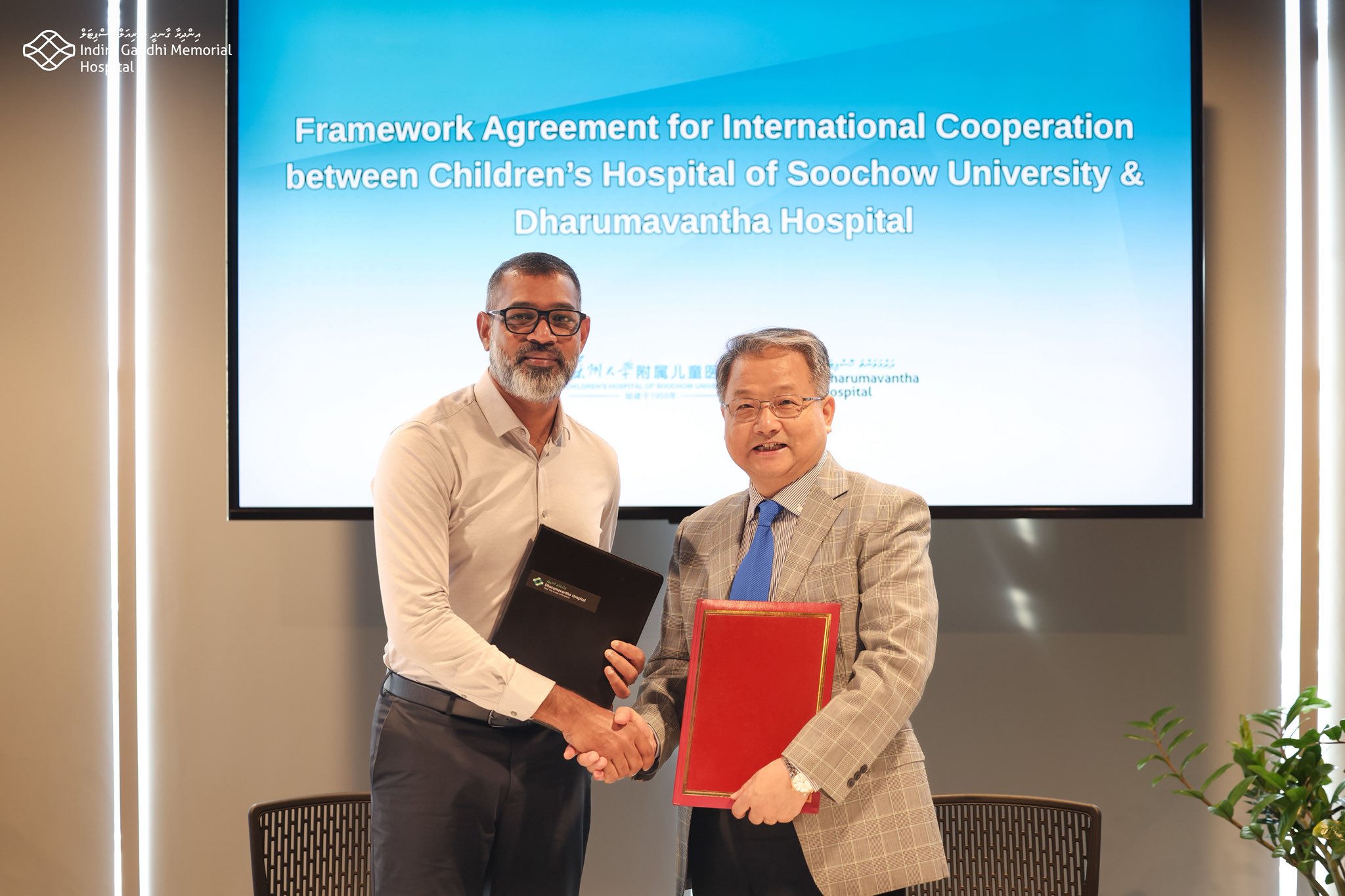 ދަރުމަވަންތަ ހޮސްޕިޓަލާއި ޗައިނާގެ ސޫޗައު ޔުނިވާސިޓީގެ ކުޑަކުދިންގެ ހޮސްޕިޓަލާ ދެމެދު އެއްބަސްވުމެއްގައި ސޮއި ކޮށްފި އެވެ.