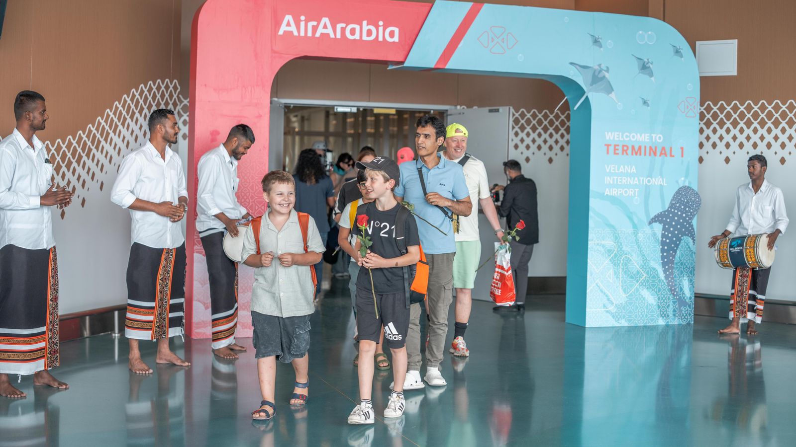 ރަސްމިއްޔާތުގައި އެއާ އަރަބިއާގެ ޗެކިން ކައުންޓަރުތައް ރަސްމީކޮށް ހުޅުވައި، 171 ފަސިންޖަރުންނަށް ހަދިޔާ ބެހުމުގެ އިތުރުން، ޓާމިނަލް 1 އަށް ކައިރިކުރި އެއާ އަރަބިއާގެ ފުރަތަމަ ފްލައިޓަށް ވޯޓަރ ސެލިއުޓެއް އަރުވައި، އެ ފްލައިޓުން ރާއްޖެ އައި 165 ފަސިންޖަރުންނަށް ސަގާފީ ހަރަކާތްތަކާއެކު މަރުހަބާ ކިޔުނެވެ.