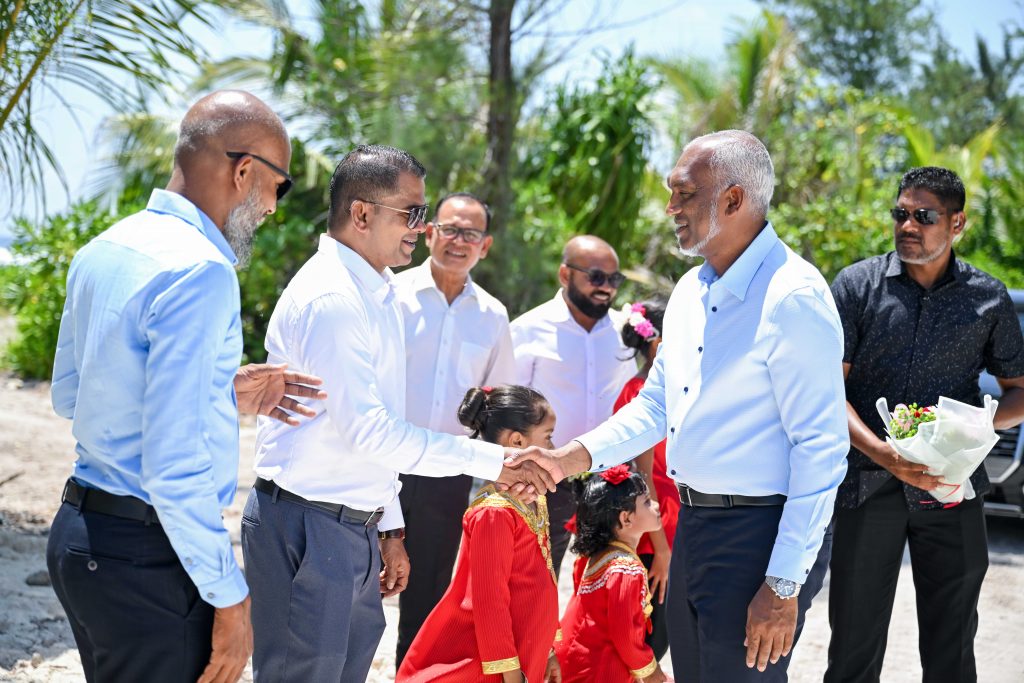 ރައީސް ޑރ. މުހައްމަދު މުއިއްޒުއަށް ހުޅުދޫ އަދި މީދޫން މަރުހަބާ ދެންނެވުން — ފޮޓޯ: ރައީސް އޮފީސް