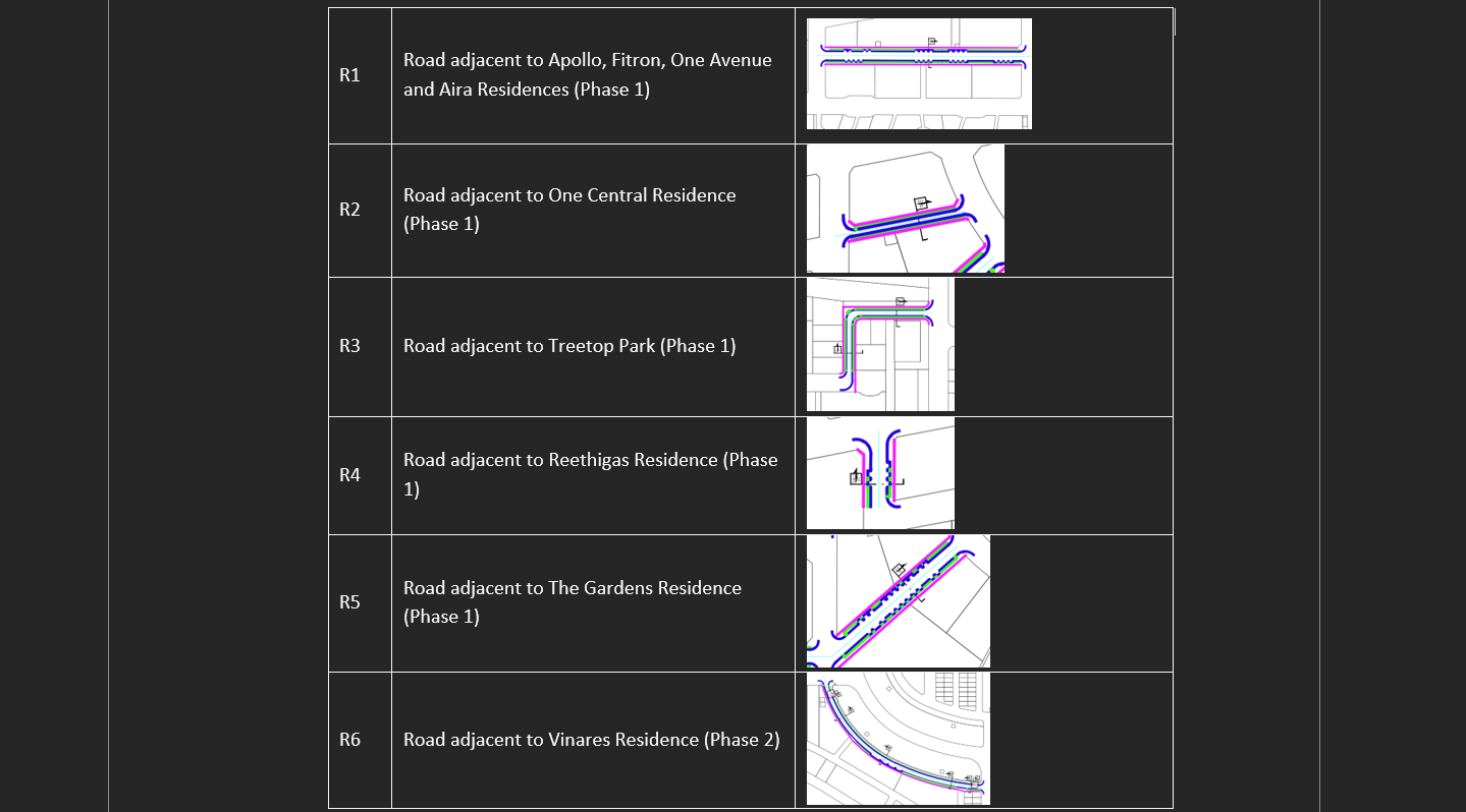 - R1: އެޕޮލޯ، ފިތިރޯން، ވަން އެވެނިއު އަދި އައިރާ ރެސިޑެންސްއާ ޖެހިގެން ހުންނަ މަގު (ފޭސް 1)