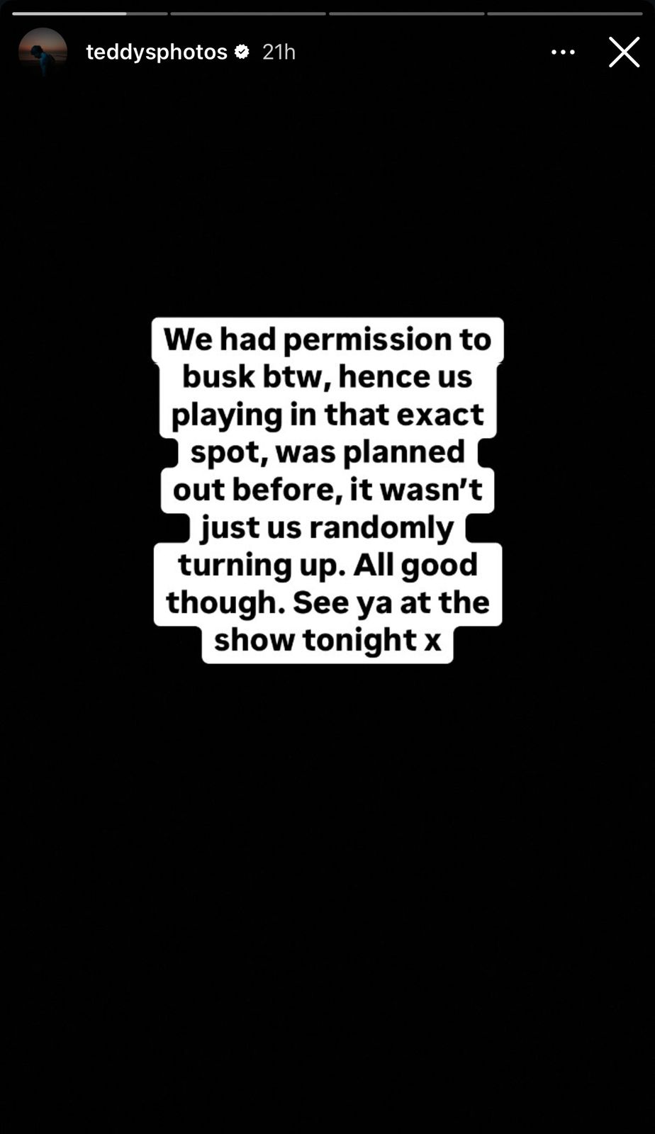 އެހެންނަމަވެސް، ޝީރަން އިންސްޓަގްރާމްގައި ހިއްސާކުރި ޕޯސްޓެއްގައި ބުނެފައިވަނީ އެ ތަނުގައި ލަވަކިޔުމުގެ ހުއްދަ ލިބިފައިވާ ކަމަށާއި، އެއީ ކުރިން ރޭވިފައިވާ ކަމެއް ކަމަށެވެ. އަދި މި ހާދިސާއާ ގުޅިގެން މައްސަލައެއް ނެތް ކަމަށާއި، އެރޭ ބޭއްވުމަށް ހަމަޖެހިފައިވާ ކޮންސަރޓުގައި ބައްދަލުވާނެ ކަމަށް އޭނާ ބުނެފައިވެ އެވެ.